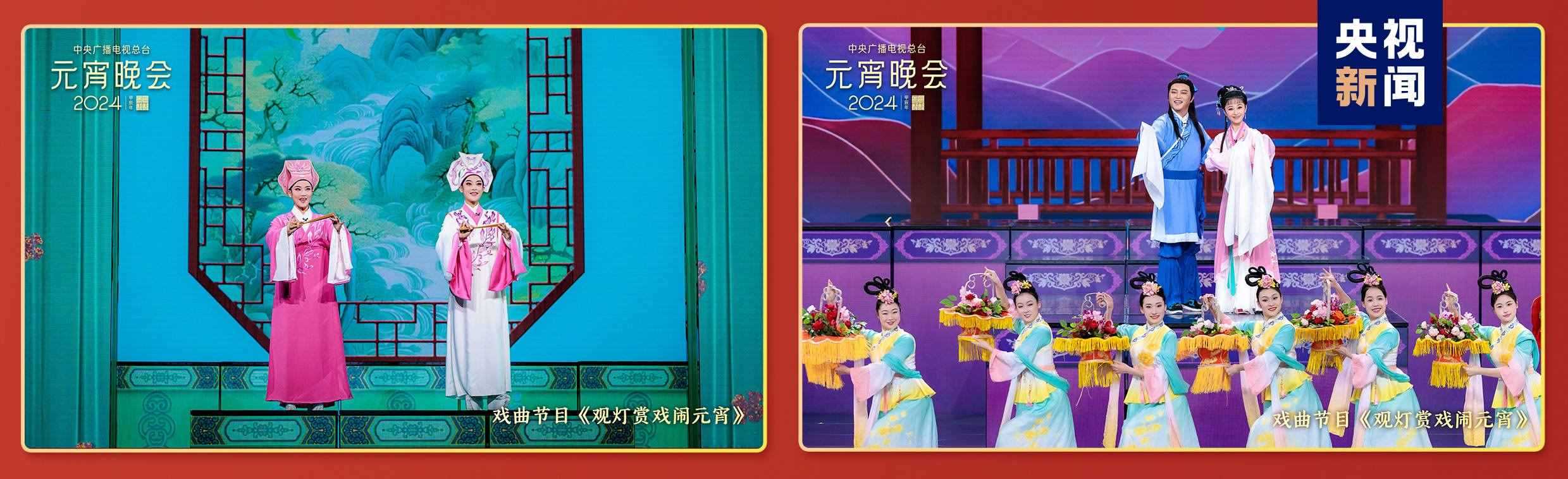 戲曲節(jié)目中,伴隨著“火樹(shù)千春妍,元夕月正圓,歡歌笑語(yǔ)喧”的戲腔戲韻,閩劇戲歌首次亮相總臺(tái)元宵晚會(huì)。其他劇種還玩上了跨界表演,熟悉的旋律響起,站在舞臺(tái)上的表演者卻是令人直呼意外的“混搭”組合。陳麗君與黃齡攜手帶來(lái)越劇《梁?!愤x段,潘檸?kù)o與沙溢共唱黃梅戲《天仙配》,在上元之夜演繹傳世愛(ài)情故事,“戲曲真的出圈了”“誰(shuí)說(shuō)年輕人不聽(tīng)?wèi)?,永遠(yuǎn)為經(jīng)典唱段打call”。