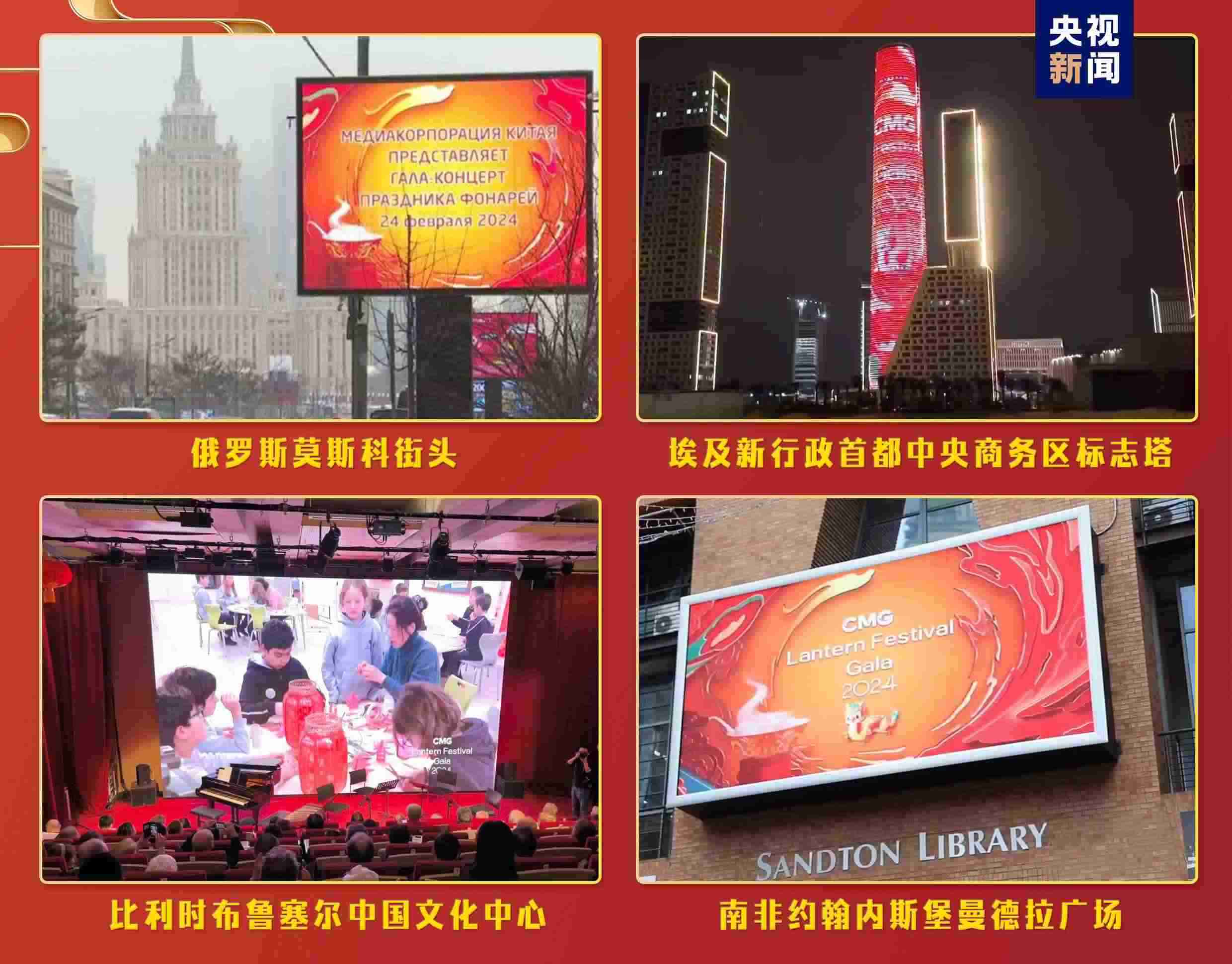“海外千屏”持續(xù)閃耀,跨越山海點(diǎn)亮全球地標(biāo)。充滿濃郁中國(guó)年味兒的《2024年元宵晚會(huì)》宣傳片登陸美國(guó)、德國(guó)、意大利、俄羅斯、南非、巴西、阿聯(lián)酋等全球17個(gè)國(guó)家、25座城市的2627塊戶外大屏和院線銀幕。意大利米開(kāi)朗琪羅廣場(chǎng)、非洲第一高樓——埃及新行政首都中央商務(wù)區(qū)標(biāo)志塔等地標(biāo)大屏亮起“中國(guó)紅”,帶當(dāng)?shù)孛癖姵两礁惺苤袊?guó)節(jié)日的喜慶氛圍。