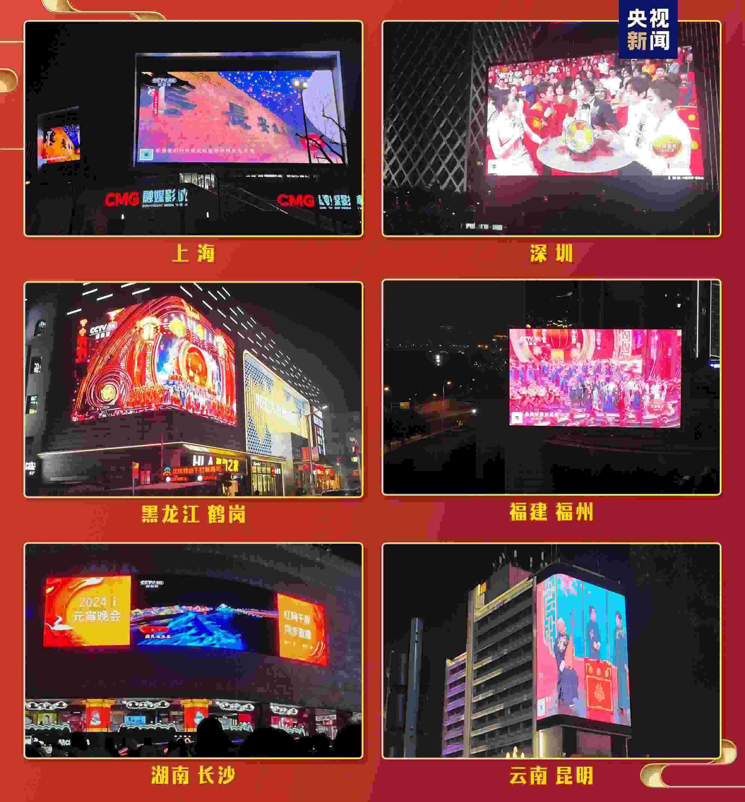 百城千屏喜“躍”街頭。元宵節(jié)當(dāng)晚,在北京、天津、上海、重慶、深圳、沈陽(yáng)、長(zhǎng)沙、成都、昆明、西寧等全國(guó)112個(gè)城市1075塊地標(biāo)大屏上同步播出元宵晚會(huì)。市民在核心商圈、生活廣場(chǎng)和交通樞紐等多元化場(chǎng)景中同步觀燈賞月看元宵晚會(huì)。