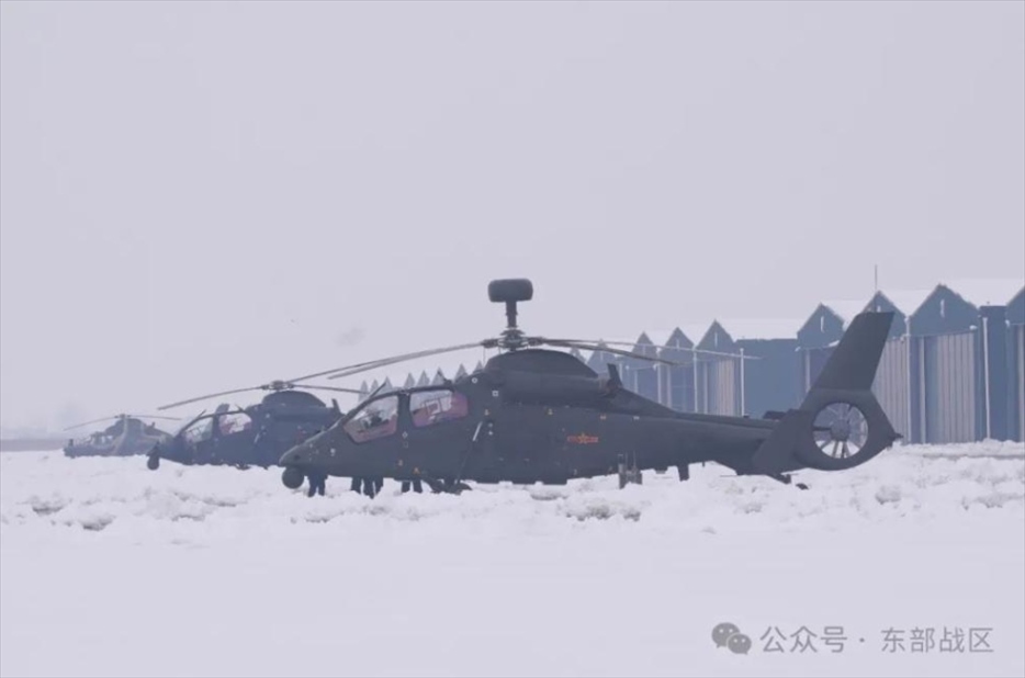 近日,第71集團軍“江淮雄鷹”旅駐地降下春雪,面對嚴寒、低溫、積雪等復雜氣象條件,他們展開了一場多課目、多機型編隊雪地飛行訓練。