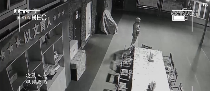 放置在哨樓的攝像機(jī),在凌晨兩點(diǎn)多的時(shí)候記錄了新兵們第一次執(zhí)勤時(shí)的狀態(tài)。