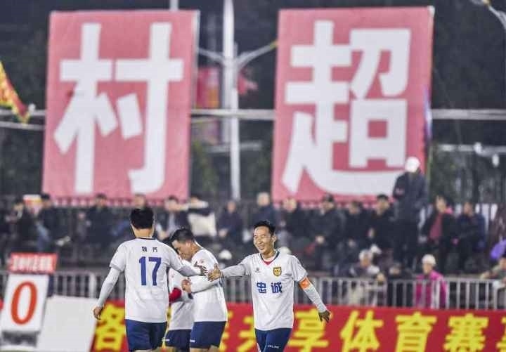 2024年1月7日,“村超”上賽季射手王、忠誠村球員董永恒(右)在進球后和隊友慶祝。2024年貴州榕江(三寶侗寨)和美鄉(xiāng)村足球超級聯(lián)賽(“村超”)新賽季于1月6日在貴州省黔東南苗族侗族自治州榕江縣激情開賽。新賽季“村超”參賽隊伍實現(xiàn)大幅擴容,從20支球隊增加到62支,共計將有1800余名球員參與。新華社記者 陶亮 攝