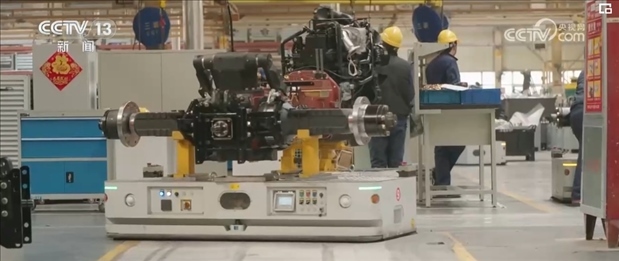 這是一部自動(dòng)化的AGV轉(zhuǎn)運(yùn)小車,也叫做自動(dòng)搬運(yùn)機(jī)器人,它搬運(yùn)的可不是小零件,而是拖拉機(jī)底盤(pán)。這個(gè)環(huán)節(jié)如果靠人工轉(zhuǎn)運(yùn),費(fèi)時(shí)又費(fèi)力,如今在它的幫助下,幾秒鐘就可以完成。