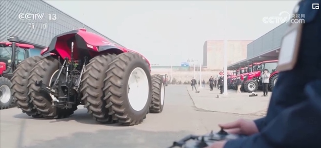 在這個(gè)數(shù)字項(xiàng)目區(qū),拖拉機(jī)生產(chǎn)的幾十道工序都在不斷優(yōu)化創(chuàng)新。這個(gè)沒(méi)有駕駛艙,更沒(méi)有駕駛員的拖拉機(jī)可以自由行走,指揮它行動(dòng)的是一部手持操作面板,這是中國(guó)一拖新上線的無(wú)人駕駛拖拉機(jī)。
