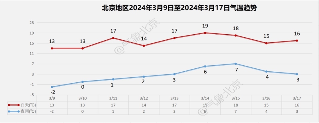 北京未來9天氣溫預(yù)報(bào)出爐,最高溫達(dá)19℃