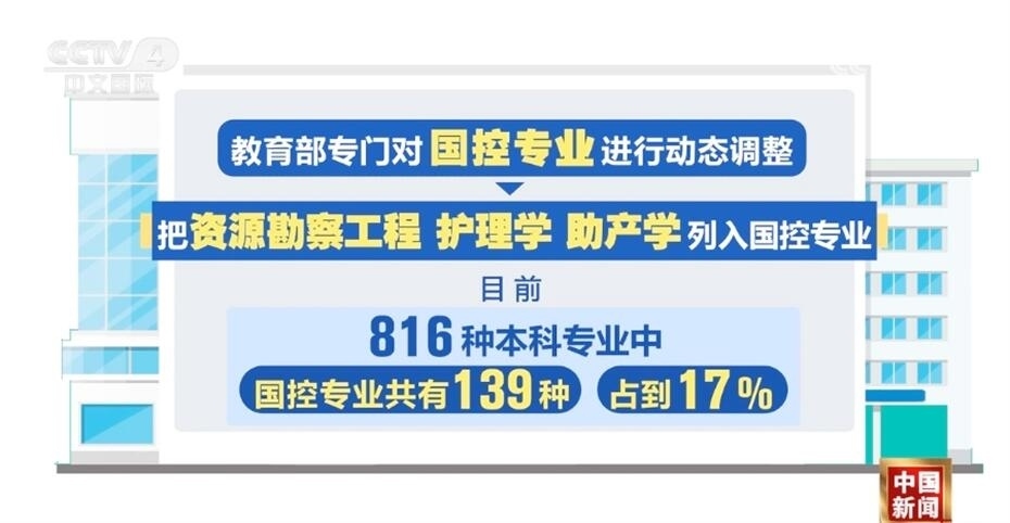 此次教育部專(zhuān)門(mén)對(duì)國(guó)控專(zhuān)業(yè)進(jìn)行了動(dòng)態(tài)調(diào)整,把資源勘察工程、護(hù)理學(xué)、助產(chǎn)學(xué)列入了國(guó)控專(zhuān)業(yè)。目前,816種本科專(zhuān)業(yè)中,國(guó)控專(zhuān)業(yè)共有139種,占到17%。未來(lái),國(guó)控專(zhuān)業(yè)范圍還將進(jìn)行“有進(jìn)有出”的動(dòng)態(tài)調(diào)整。