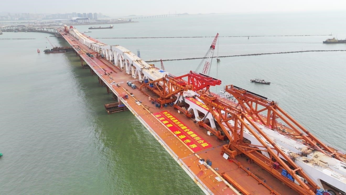 澳氹第四條跨海大橋連接澳門新城填海A區(qū)、填海E區(qū)以及港珠澳大橋人工島口岸區(qū),是構(gòu)建澳門城市交通體系的關(guān)鍵節(jié)點(diǎn)。該大橋于3月12日順利實(shí)現(xiàn)全橋合龍,由主體結(jié)構(gòu)工程全面邁入橋梁附屬結(jié)構(gòu)工程。(總臺(tái)記者 ?劉冰清)