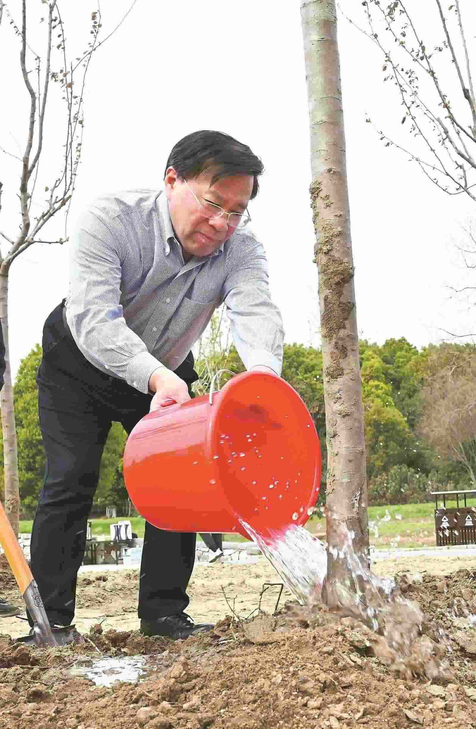 隨后,韓俊等安徽省領(lǐng)導(dǎo)拿起鐵鍬走向植樹(shù)地點(diǎn),同現(xiàn)場(chǎng)的干部群眾一起,將一棵棵樹(shù)苗植入樹(shù)坑。大家揮鍬鏟土、培土圍堰、提水澆灌,經(jīng)過(guò)一番忙碌,一排排新栽下的廣玉蘭、桂花、紫薇、海棠等樹(shù)種,在和煦的春風(fēng)中昂然挺立,孕育著勃勃生機(jī),煥發(fā)出綠色希望。植樹(shù)過(guò)程中,韓俊對(duì)植樹(shù)造林工作提出明確要求。他說(shuō),植樹(shù)造林功在當(dāng)代、利在千秋。要扎實(shí)開(kāi)展全民義務(wù)植樹(shù),合理優(yōu)化國(guó)土綠化格局,持續(xù)提高造林綠化質(zhì)量,鞏固和增強(qiáng)生態(tài)系統(tǒng)碳匯能力,不斷提升生態(tài)系統(tǒng)多樣性、穩(wěn)定性、持續(xù)性,切實(shí)把好山好水保護(hù)好。各級(jí)領(lǐng)導(dǎo)干部要帶頭抓好國(guó)土綠化和生態(tài)文明建設(shè)各項(xiàng)工作,大力營(yíng)造愛(ài)綠、植綠、護(hù)綠的文明風(fēng)尚,帶動(dòng)更多干部群眾爭(zhēng)做生態(tài)文明建設(shè)的實(shí)踐者、推動(dòng)者,共同種出屬于大家的綠水青山和金山銀山,繪出人與自然和諧共生的美麗安徽新畫(huà)卷。