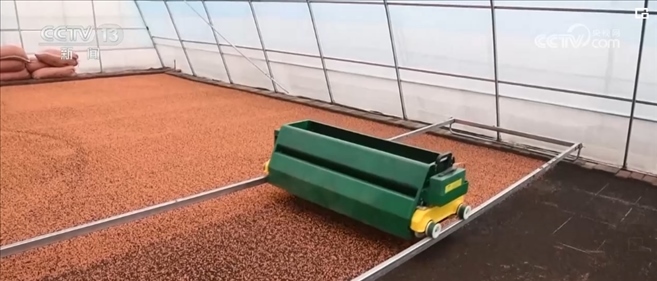 在黑龍江墾區(qū)共青農(nóng)場的智能水稻育秧大棚內(nèi),自動水稻播種機械正將稻種播撒在秧盤內(nèi)。育秧大棚接入了物聯(lián)網(wǎng)系統(tǒng)的智能調(diào)溫控水系統(tǒng),能有效增強大棚保溫性能、增加棚內(nèi)溫度。同時,還接入了智能卷簾器、溫度傳感器等。
