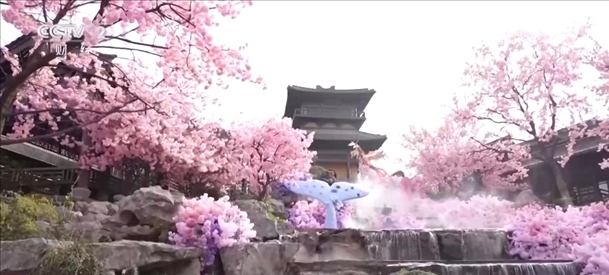 除了賞花外,江蘇常州的東方鹽湖城推出山海主題花境,花瀑、花墻、花廊等布景隨處可見,配上故事感的“打卡”裝置以及山海主題人物實(shí)景走秀互動(dòng),將游客拉入山海奇幻神話世界。
