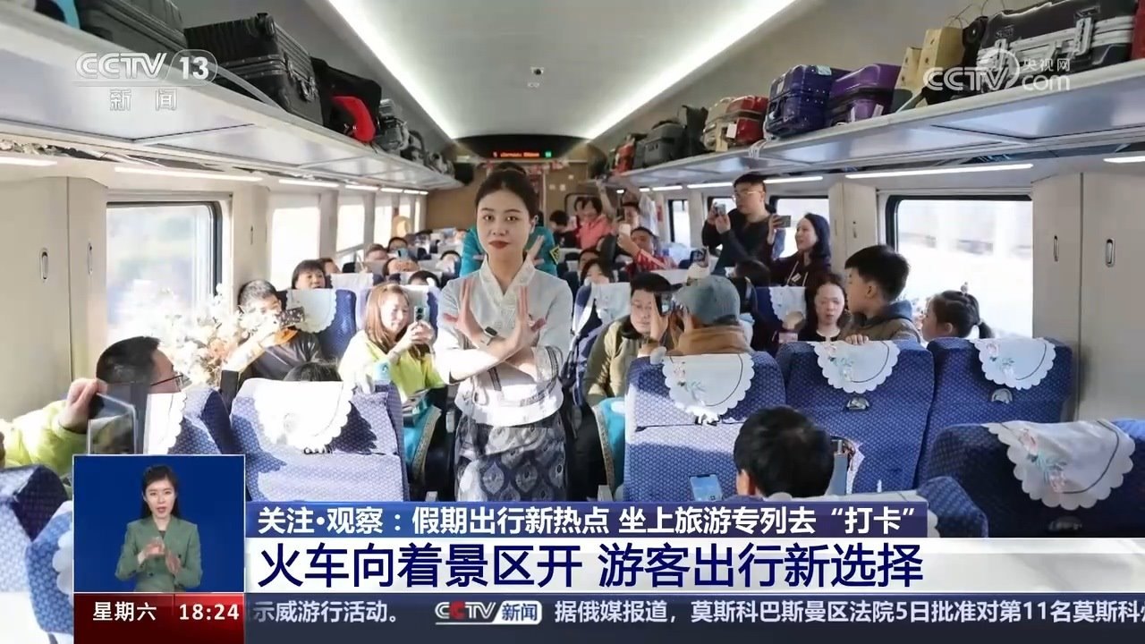 央視網(wǎng)消息:清明春花放,踏青好時(shí)節(jié)。坐著火車去旅行,縱跨千山,橫飛萬水,用速度與激情串聯(lián)美景。今年清明假期第一天也就是4月4日,全國(guó)鐵路發(fā)送旅客1853.6萬人次,創(chuàng)今年以來單日旅客發(fā)送量新高。以網(wǎng)紅城市、網(wǎng)紅景區(qū)為目的地的客流增幅明顯,各地增開的臨客列車也瞄準(zhǔn)了游客“打卡地”。坐上旅游專列去旅行,可以給移步換景的美好出游心愿帶來多少種可能呢?進(jìn)入今天的關(guān)注觀察。