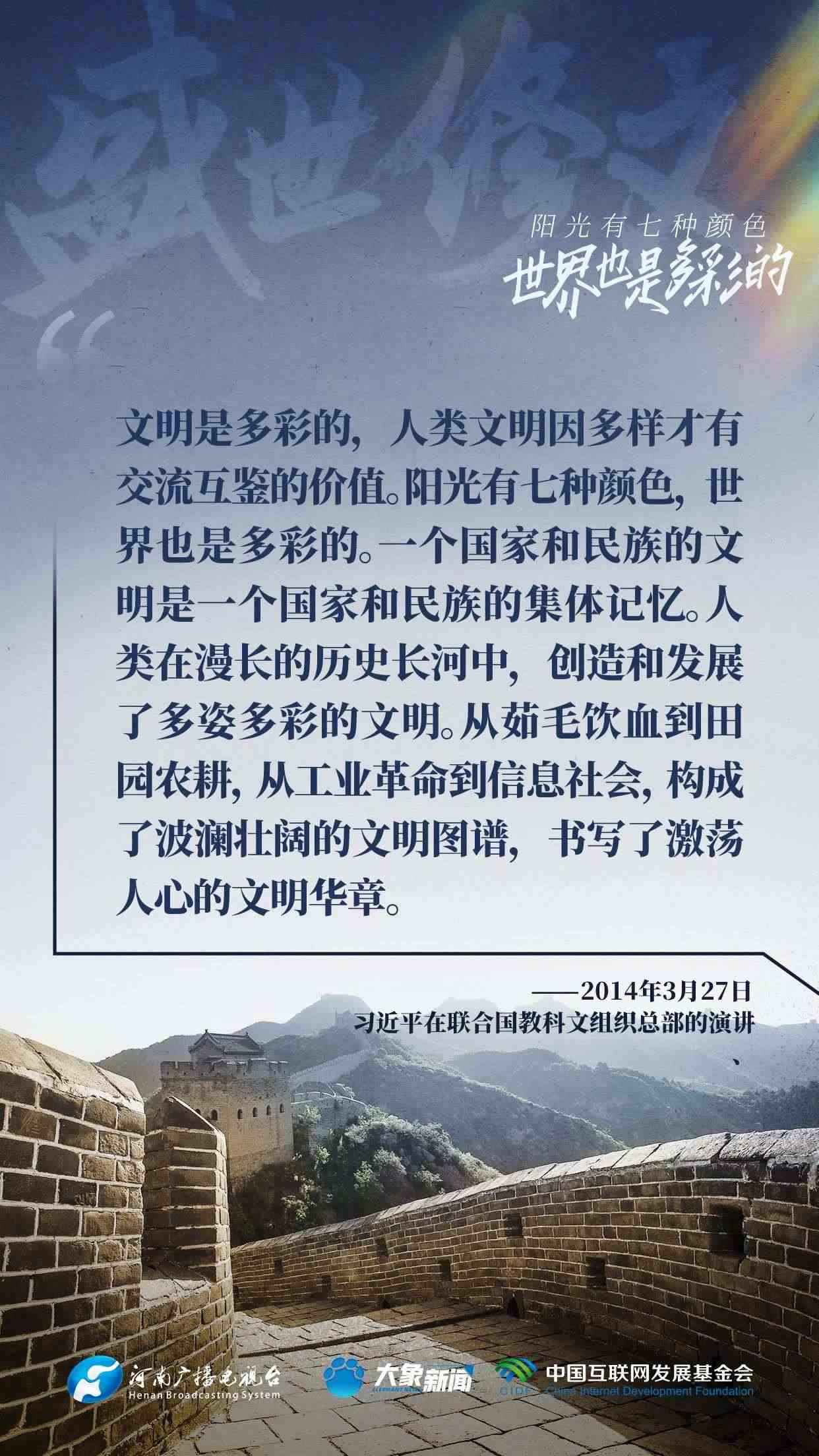 今天推出:習(xí)近平文化思想金句之《盛世修文|陽光有七種顏色,世界也是多彩的》