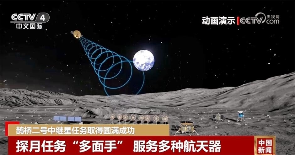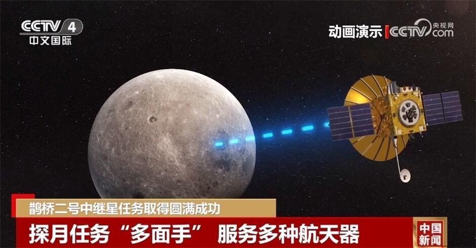 央視網(wǎng)消息:國家航天局4月12日宣布,鵲橋二號中繼星已完成在軌對通測試。經(jīng)評估,中繼星平臺和載荷工作正常,功能和性能滿足任務要求,可為探月工程四期及后續(xù)國內、外月球探測任務提供中繼通信服務,鵲橋二號中繼星任務取得圓滿成功。