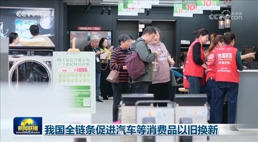央視網(wǎng)消息(新聞聯(lián)播):記者從商務(wù)部了解到,近日,14部門聯(lián)合發(fā)布《推動(dòng)消費(fèi)品以舊換新行動(dòng)方案》,部署組織在全國(guó)范圍內(nèi)開(kāi)展汽車、家電、家裝廚衛(wèi)等消費(fèi)品以舊換新。