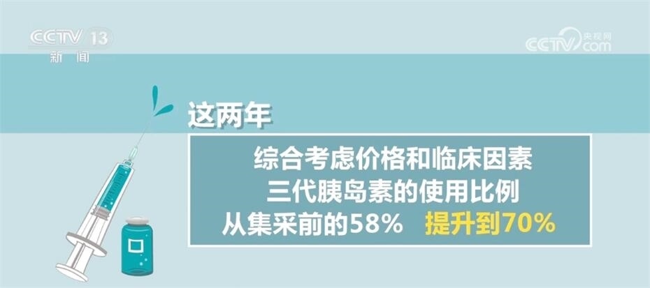 記者注意到,三代甘精胰島素在集采中從原來的每支140—160多元降至70元左右;二代胰島素普遍從原來的每支50元左右降至30元以內(nèi)。相較之下,三代胰島素的降幅更加明顯。這兩年,綜合考慮價(jià)格和臨床因素,三代胰島素的使用比例從集采前的58%提升到70%。