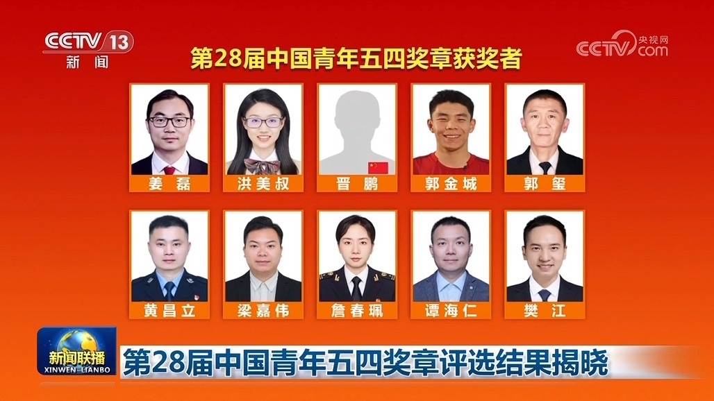 央視網(wǎng)消息(新聞聯(lián)播):在五四青年節(jié)到來之際,第28屆中國青年五四獎?wù)略u選結(jié)果揭曉。