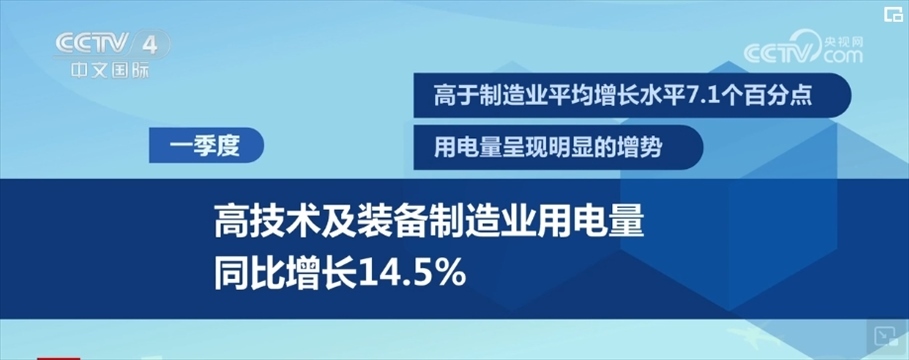 從行業(yè)看,一季度,高技術(shù)及裝備制造業(yè)用電量同比增長14.5%,高于制造業(yè)平均增長水平7.1個(gè)百分點(diǎn),用電量呈現(xiàn)明顯的增勢。