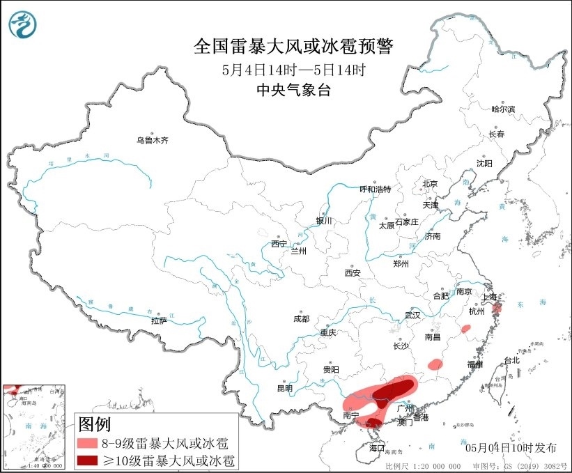 央視網(wǎng)消息:中央氣象臺5月4日10時繼續(xù)發(fā)布強對流天氣藍(lán)色預(yù)警,預(yù)計5月4日14時至5日14時,廣西中東部、廣東西部、江西南部等地的部分地區(qū)將有8-10級雷暴大風(fēng)或冰雹天氣,其中廣西東部和東南部沿海、廣東西北部和西南部沿海等地的局地將有10級以上雷暴大風(fēng),最大風(fēng)力可達(dá)11級;湖南南部、江西、福建西部和東南部、貴州西南部、廣西中東部、廣東、海南島北部等地的部分地區(qū)將有小時雨量大于20毫米的短時強降水天氣,其中廣西東部、廣東中西部等地的局地最大小時雨量大于50毫米,最大可達(dá)80毫米以上。