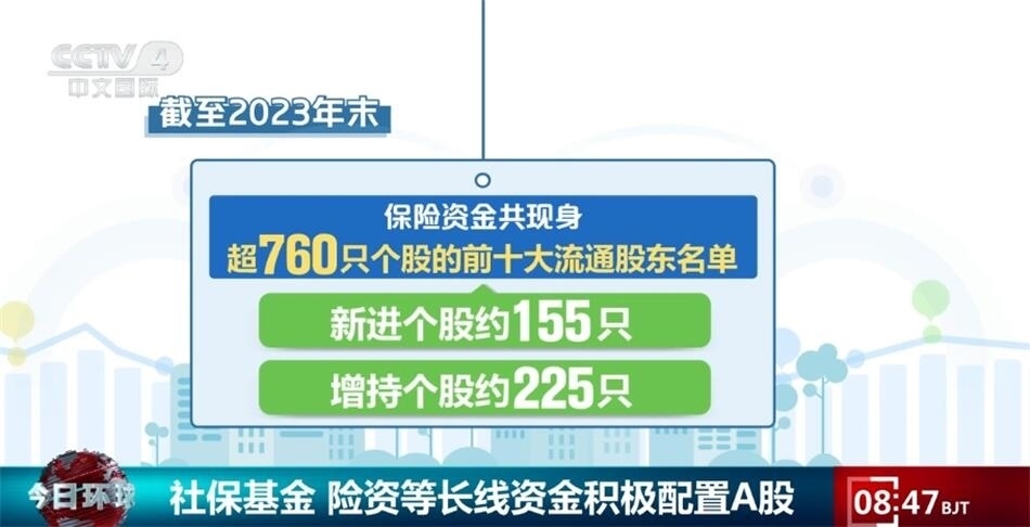央視網(wǎng)消息:A股2023年年報(bào)日前披露結(jié)束,上市公司的前十大流通股東情況顯示,包括社?;稹⒈kU(xiǎn)資金、合格境外機(jī)構(gòu)投資者等在內(nèi)的長(zhǎng)線資金入市步伐正在不斷加快,A股中長(zhǎng)期投資力量不斷壯大。