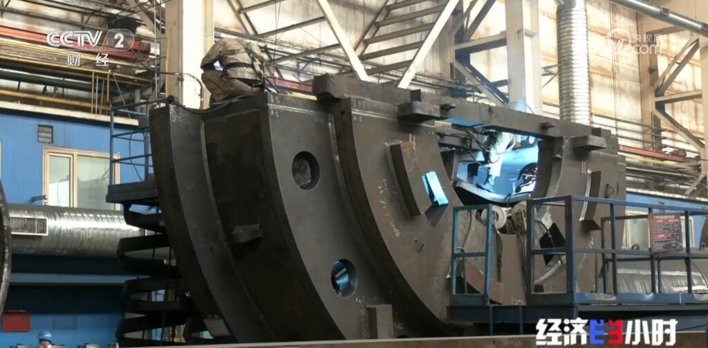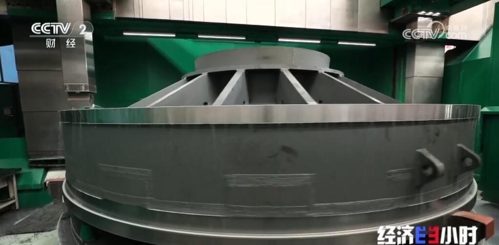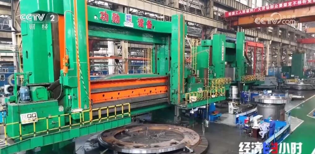 2019年,他們引進了新設備,車床上正在加工的工件是近期準備交付給客戶用在抽水蓄能項目上的關鍵部件。像這樣結構復雜的零件,如果使用之前的老舊設備加工,至少需要更換兩三臺不同的加工設備,需要半個月以上才能完成加工。而這臺新型設備則可以不挪動工件就能完成所有加工工序,工期也可以縮短到7—10天。