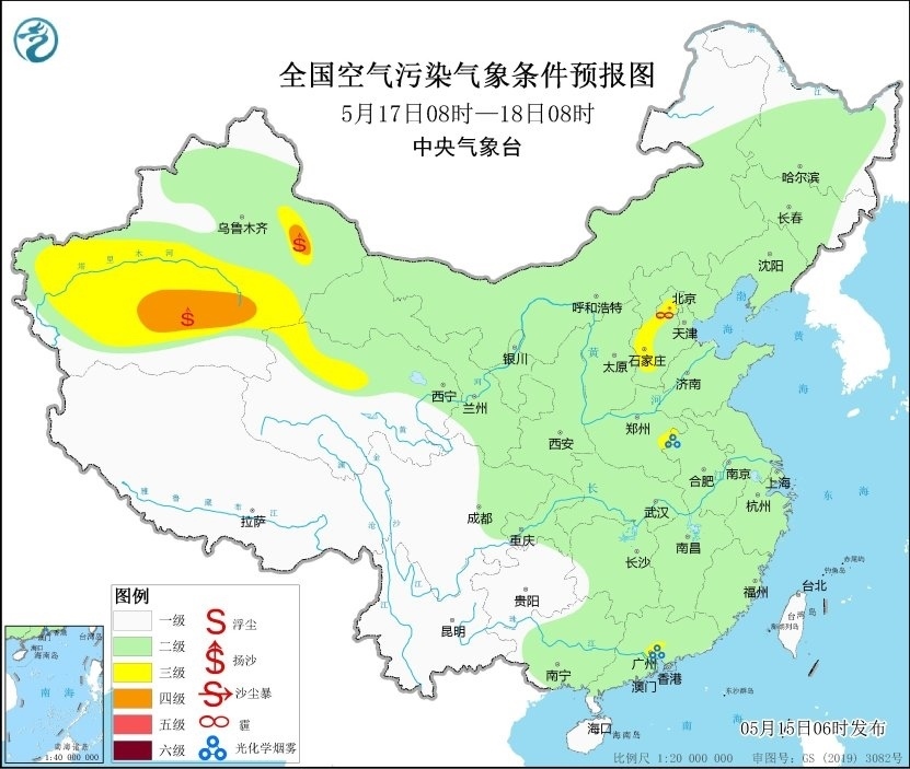 央視網(wǎng)消息:據(jù)中央氣象臺(tái)網(wǎng)站消息,預(yù)計(jì),5月15日08時(shí)至16日08時(shí),新疆南部和東部、甘肅西部、內(nèi)蒙古西部、青海北部以及河南中部等地有揚(yáng)沙或浮塵天氣,其中新疆東部、甘肅西部、內(nèi)蒙古西部等地局地有沙塵暴,中央氣象臺(tái)5月15日06時(shí)繼續(xù)發(fā)布沙塵暴藍(lán)色預(yù)警。