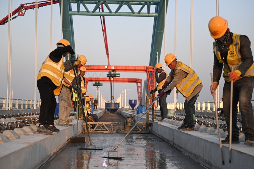 2024年3月20日,中鐵三局建設(shè)者在滬蘇湖鐵路東苕溪特大橋上施工。滬蘇湖鐵路起自上海虹橋站,途經(jīng)江蘇省蘇州市,終至浙江省湖州市湖州站。項(xiàng)目建成運(yùn)營后,將進(jìn)一步完善區(qū)域路網(wǎng)布局,促進(jìn)沿線經(jīng)濟(jì)社會(huì)發(fā)展和長三角一體化高質(zhì)量發(fā)展。新華社記者 黃宗治 攝
