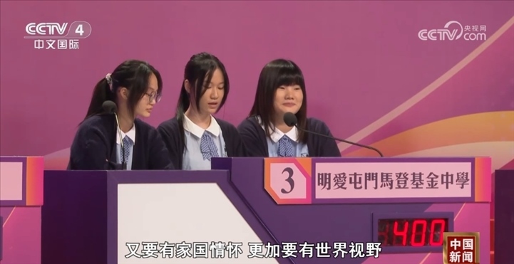 參賽學(xué)生鄧伯雯稱:“通過這次比賽,我們也學(xué)習(xí)到更多關(guān)于國家和香港的知識(shí),對于國家其實(shí)有更強(qiáng)的自豪感。我們要去講好香港故事,要去宣傳好香港故事和中國故事,然后讓世界對于中國、對于香港有一個(gè)更好的認(rèn)識(shí)?!?/p>