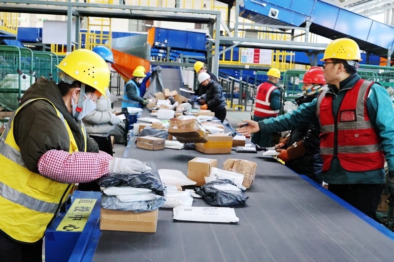 2月15日,中國郵政集團(tuán)甘肅省張掖市郵政寄遞物流共配中心工作人員在分揀包裹。春節(jié)假期,眾多勞動(dòng)者忙碌在工作崗位上。新華社發(fā)(成林 攝)