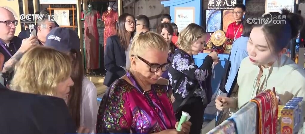 5月24日,北京入境旅游發(fā)展大會開幕式在首鋼園舉辦,來自全球的百名旅行商代表前來參展,中外旅游企業(yè)進(jìn)行點(diǎn)對點(diǎn)洽談。現(xiàn)場搭建了非遺展區(qū),京式旗袍傳統(tǒng)制作技藝等特色非遺項目吸引外國旅行商互動體驗,不少人還現(xiàn)場選購絲綢、茶葉等商品。