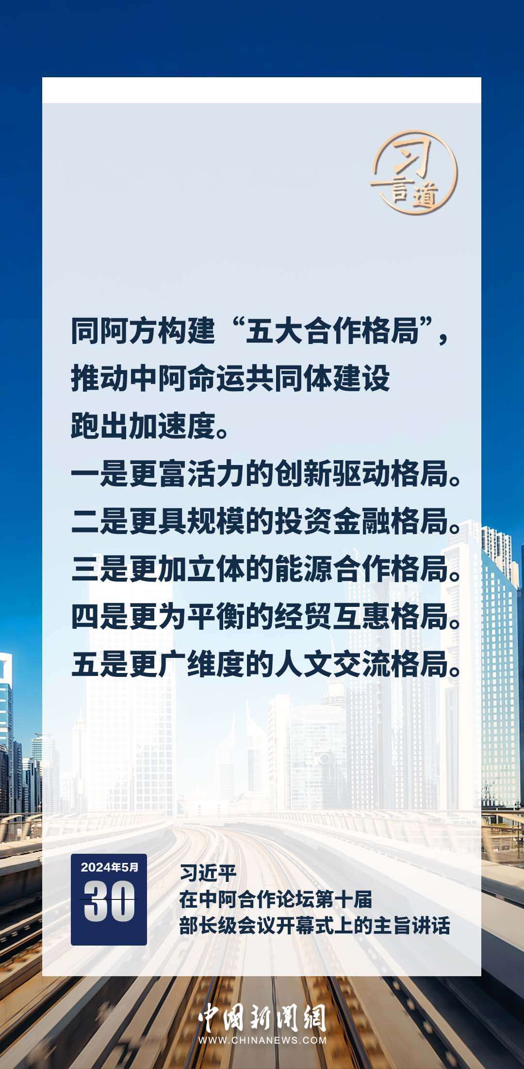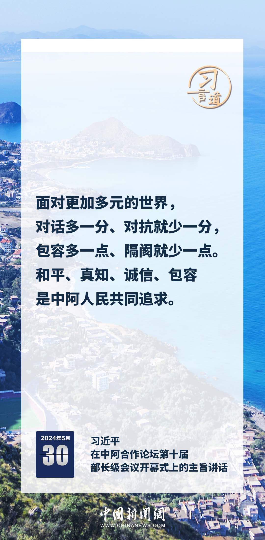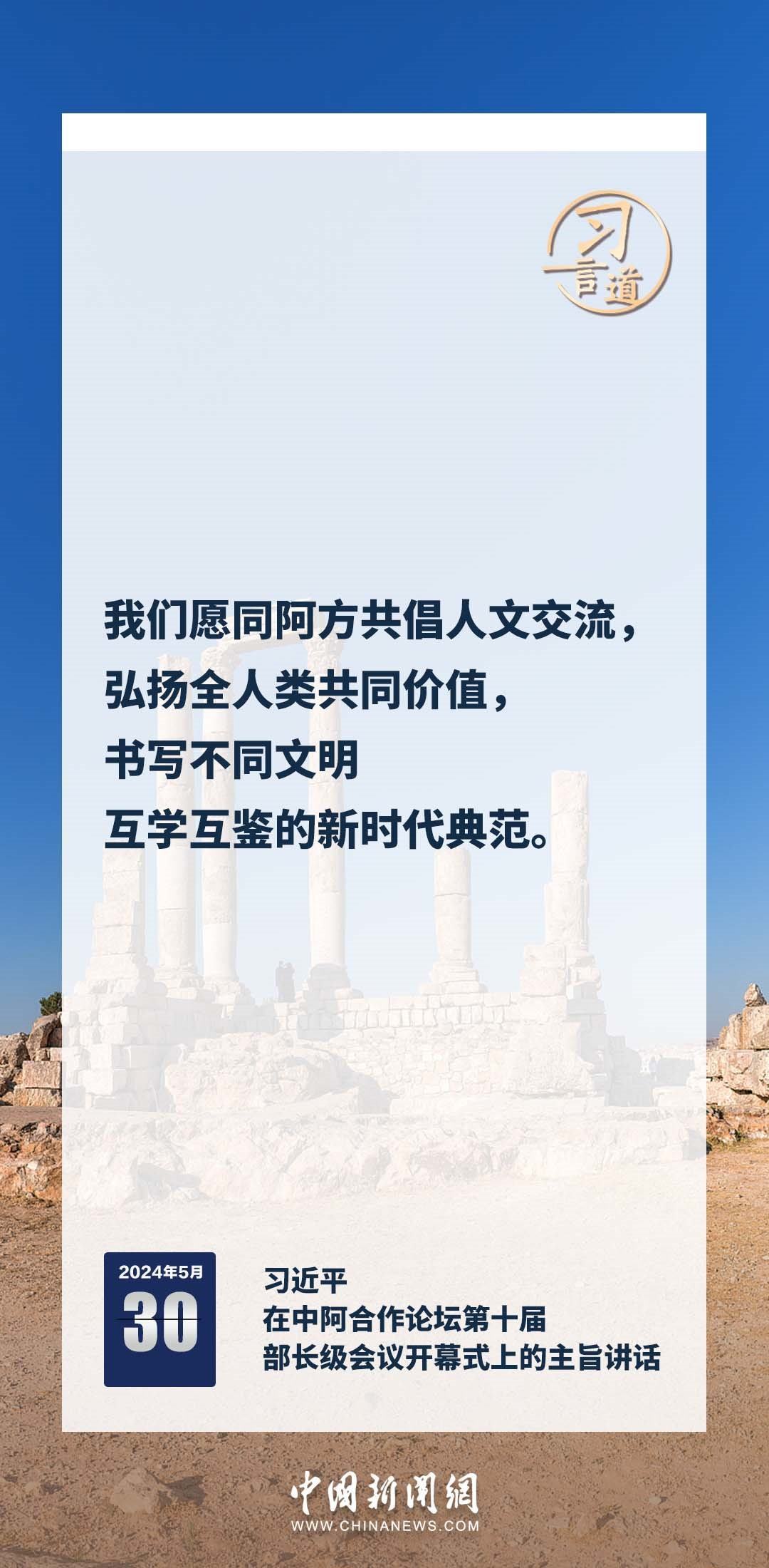 5月30日上午,國(guó)家主席習(xí)近平在北京釣魚臺(tái)國(guó)賓館出席中阿合作論壇第十屆部長(zhǎng)級(jí)會(huì)議開幕式并發(fā)表主旨講話。習(xí)近平指出——
