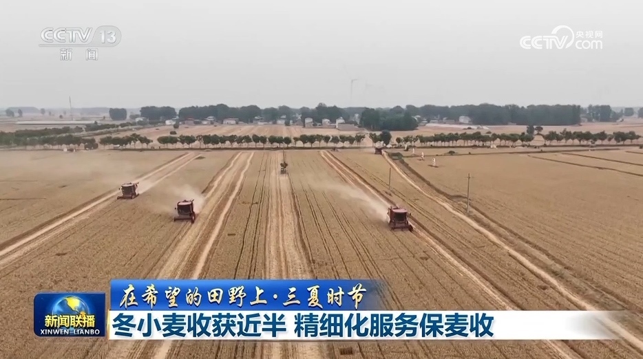 央視網(wǎng)消息(新聞聯(lián)播):農(nóng)業(yè)農(nóng)村部最新數(shù)據(jù)顯示,當(dāng)前全國已收獲冬小麥面積1.57億畝,收獲進(jìn)度近半。各地因地制宜推出了各類服務(wù)舉措,保障小麥顆粒歸倉。