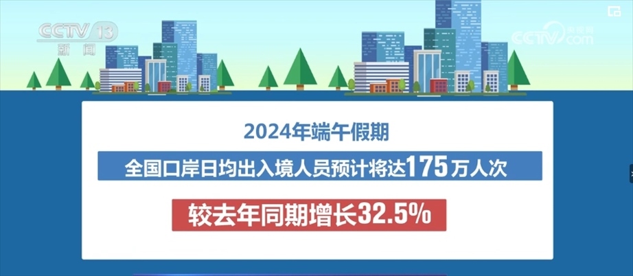央視網(wǎng)消息:記者6月6日從國家移民管理局獲悉,2024年端午假期,全國口岸日均出入境人員預(yù)計將達(dá)175萬人次,較2023年同期增長32.5%。