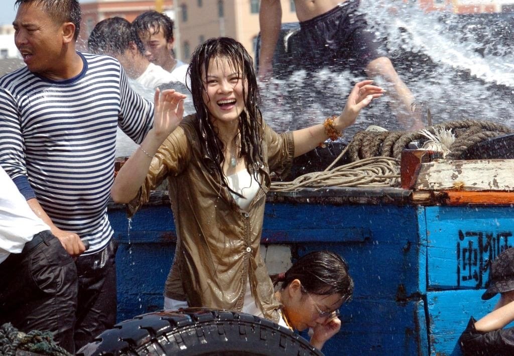 2005年6月11日,在福建省石獅市蚶江海域,一名女子參加一年一度的傳統(tǒng)端午潑水節(jié)活動。
