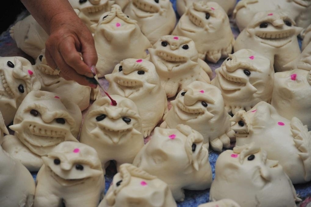 2016年6月7日,在山西晉南運(yùn)城市新絳縣澤掌村一家蒸饃店,一名村民在給蒸好的“老虎饃”“點(diǎn)紅”。端午節(jié)臨近,山西晉南地區(qū)的城鄉(xiāng)居民開始制作或購買老虎造型的晉南花饃“老虎饃”,用來在端午節(jié)敬奉先祖,祈福平安吉祥。晉南花饃已入選國家級非物質(zhì)文化遺產(chǎn)名錄。