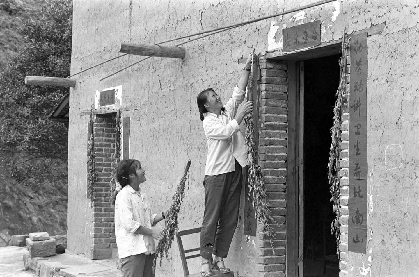 1982年,湖北秭歸一戶人家在門上掛上艾蒿、菖蒲。