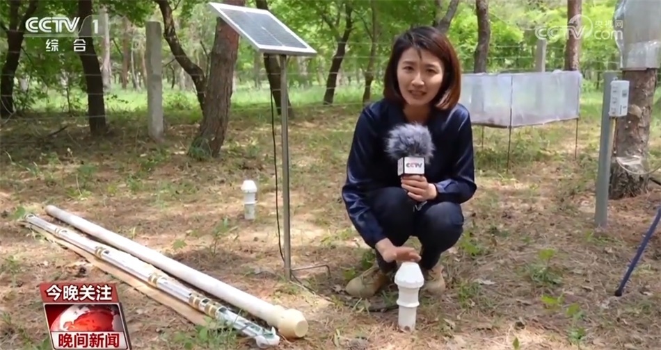 要了解樟子松的生長密碼,單靠監(jiān)測這一項是不夠的。在整個林子中,有十幾個設備都正在為這片樟子松林做著24小時不間斷的體檢。像這個2米長的大管子,像一個體溫計,里面在不同深度安裝了6層傳感器。把它直接插到土壤中,就可以監(jiān)測出地塊土壤的濕度、溫度、鹽分、肥力等。