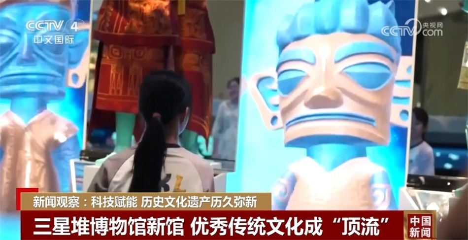 廣漢三星堆博物館副館長(zhǎng)余健介紹:“通過各種沉浸式、數(shù)字化的方式,讓收藏在博物館里的文物‘活’起來,把中華文明起源發(fā)展的歷程生動(dòng)展現(xiàn)出來。讓人們從數(shù)千年沉淀的中華文化基因中獲取精神力量,增強(qiáng)文化自信?!?/p>