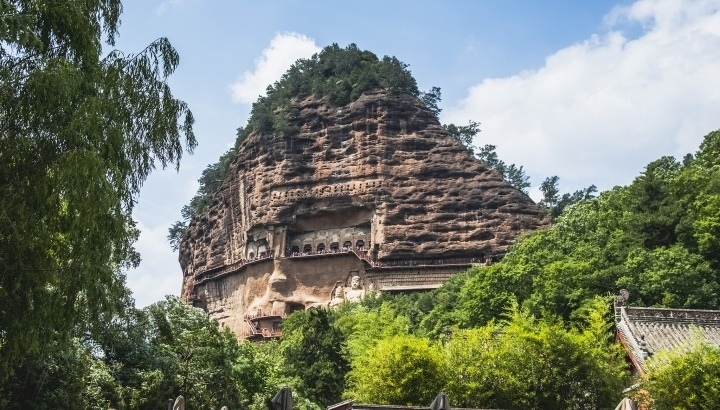 甘肅天水,麥積山石窟迎來(lái)眾多游客