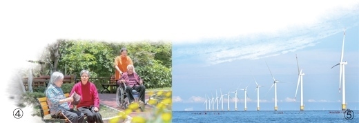 圖④:貴州省貴陽(yáng)市白云區(qū)白沙關(guān)社區(qū)幸福苑養(yǎng)老中心,老年人在花園里休息。袁福洪攝(影像中國(guó)) 圖⑤:遼寧大連莊河海上風(fēng)電項(xiàng)目。新華社記者 楊 青攝