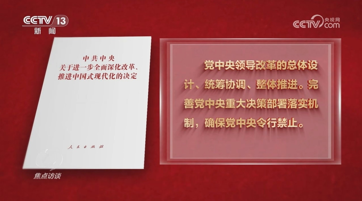 新征程上,如何提高黨對(duì)進(jìn)一步全面深化改革、推進(jìn)中國式現(xiàn)代化的領(lǐng)導(dǎo)水平?《決定》專門用一個(gè)部分來進(jìn)行部署,并從三個(gè)方面作出具體安排,第一方面的重點(diǎn)是,堅(jiān)持黨中央對(duì)進(jìn)一步全面深化改革的集中統(tǒng)一領(lǐng)導(dǎo)。