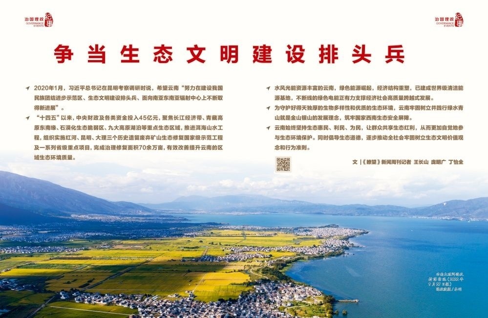 云南切實(shí)把生態(tài)文明建設(shè)擺在全局工作的突出位置,全面加強(qiáng)生態(tài)文明建設(shè),開啟美麗云南建設(shè)新征程。2022年5月,《云南省生態(tài)文明建設(shè)排頭兵規(guī)劃(2021—2025年)》發(fā)布,明確爭(zhēng)當(dāng)全國(guó)生態(tài)文明建設(shè)排頭兵目標(biāo)、主要任務(wù)和重大舉措,切實(shí)提升生態(tài)環(huán)境治理體系和治理能力現(xiàn)代化水平,全面形成綠色發(fā)展方式和生活方式。