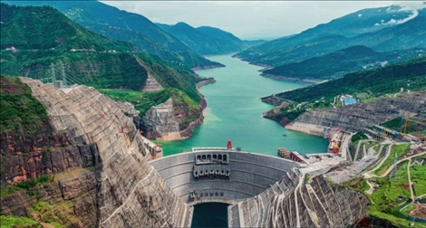 在云南省巧家縣和四川省寧南縣交界的金沙江峽谷中,上游而來的金沙江水被白鶴灘水電站大壩截住,“高峽出平湖”的景色蔚為壯觀。白鶴灘水電站年均發(fā)電量可達(dá)624億千瓦時(shí),是金沙江峽谷中的“綠色引擎”之一。