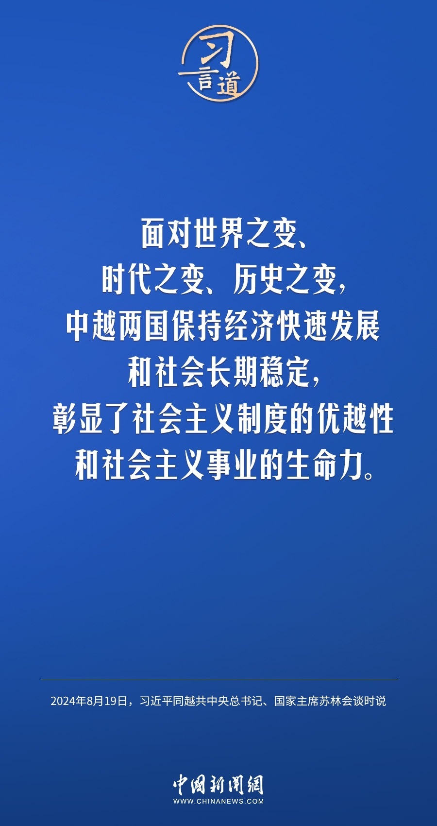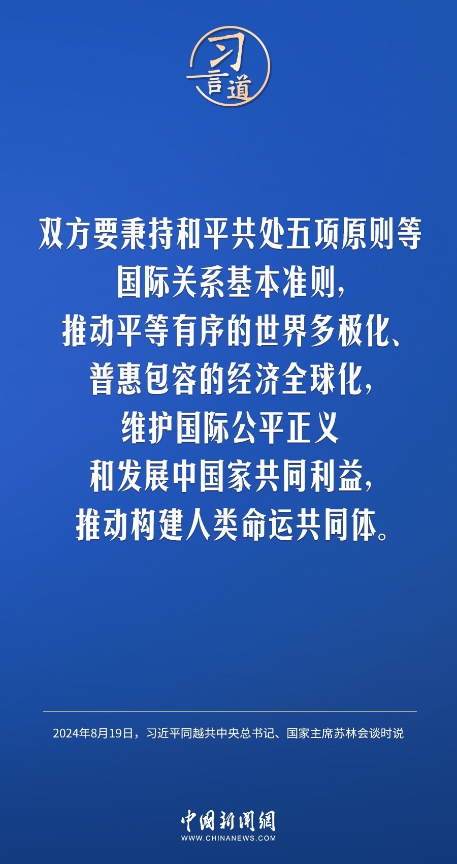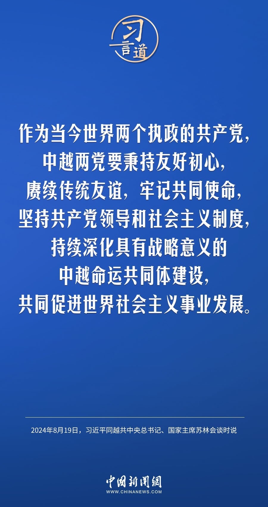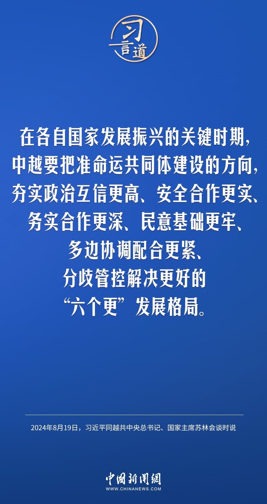 8月19日,中共中央總書記、國(guó)家主席習(xí)近平在北京人民大會(huì)堂同來華進(jìn)行國(guó)事訪問的越共中央總書記、國(guó)家主席蘇林舉行會(huì)談。習(xí)近平指出——