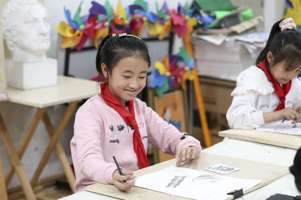 2021年10月27日,學生在黑龍江省哈爾濱市榆樹鎮(zhèn)中心校新鄉(xiāng)小學鄉(xiāng)村學校少年宮參加美術(shù)學習班。近年來,黑龍江省各地以鄉(xiāng)村小學為基礎,大力發(fā)展鄉(xiāng)村學校少年宮,開設德育、文藝、體育、科普、手工等多種課外活動,滿足學生需求,培養(yǎng)孩子們的興趣愛好和特長。
