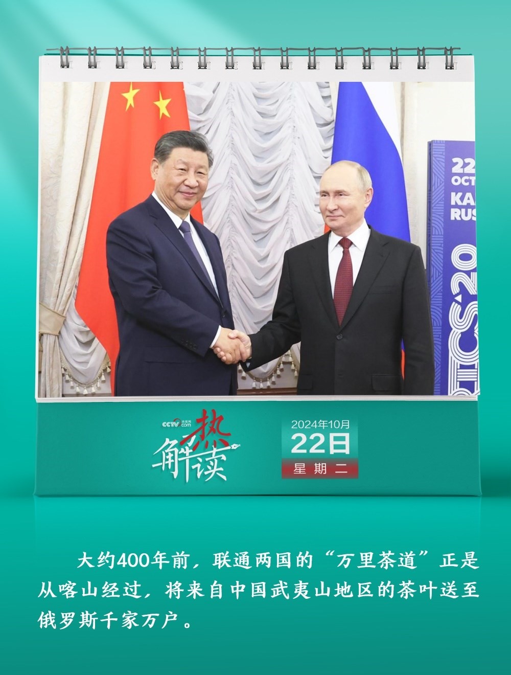 10月22日,習近平主席在俄羅斯喀山克里姆林宮同普京總統(tǒng)舉行年內(nèi)第三次會晤。在會談中,習主席提到一條名為“萬里茶道”的古老商道。