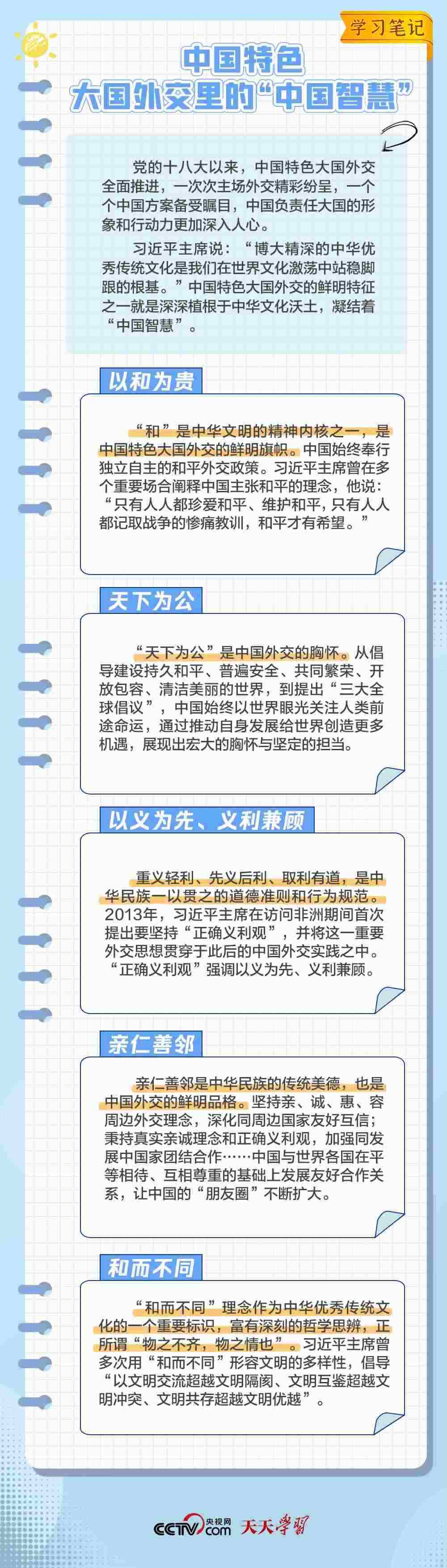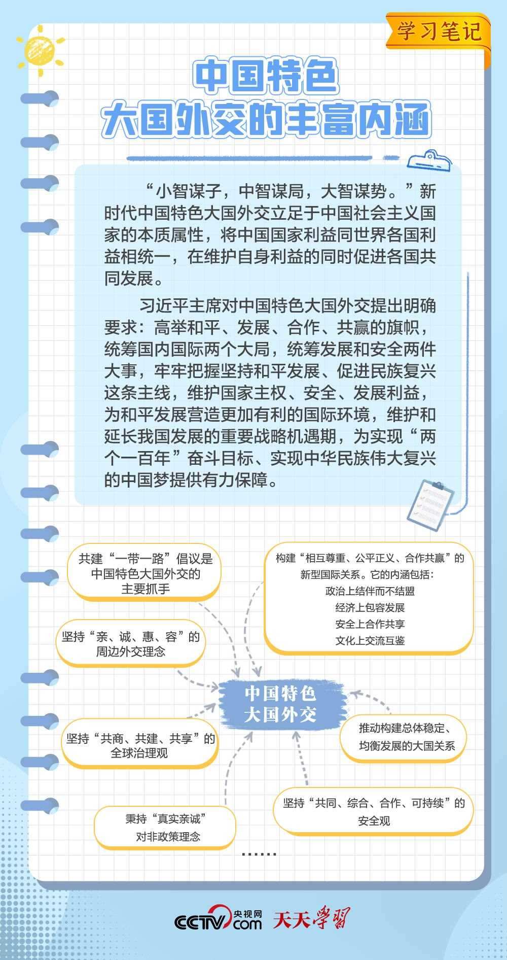 10年來,面對風(fēng)云變幻的國際形勢,中國特色大國外交扎實(shí)推進(jìn),形成了全方位、多層次、立體化的外交布局,為我國高質(zhì)量發(fā)展?fàn)I造了良好外部環(huán)境。中國特色大國外交提出10周年之際,《學(xué)習(xí)筆記》特梳理其內(nèi)涵要義,與您一同感悟其中蘊(yùn)含的“中國智慧”。