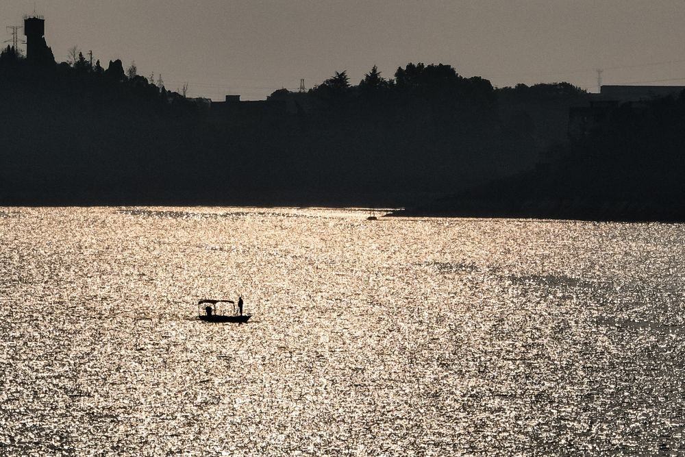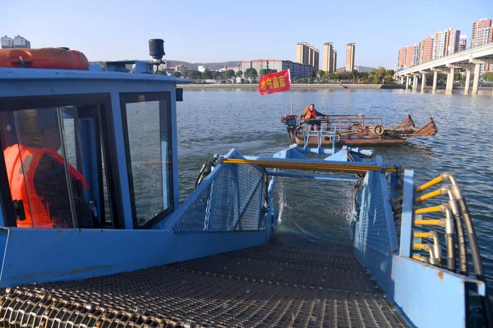 2024年10月28日,清漂員在丹江口水庫作業(yè)(無人機照片)。