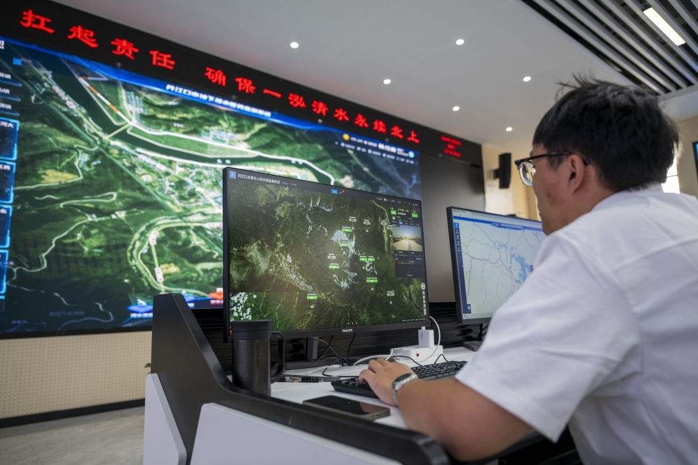 同時,為了“不讓一滴污水進(jìn)入河庫”,“空、天、地、水”守水防線全方位在丹江口庫區(qū)筑牢。通過高空衛(wèi)星、無人機、環(huán)庫岸線攝像頭、地下雨污管網(wǎng)內(nèi)的監(jiān)測儀等設(shè)備,工作人員能實時監(jiān)測庫岸線安全、非法垂釣、?;愤\輸?shù)惹闆r,重點排污企業(yè)、污水處理廠情況也一目了然。