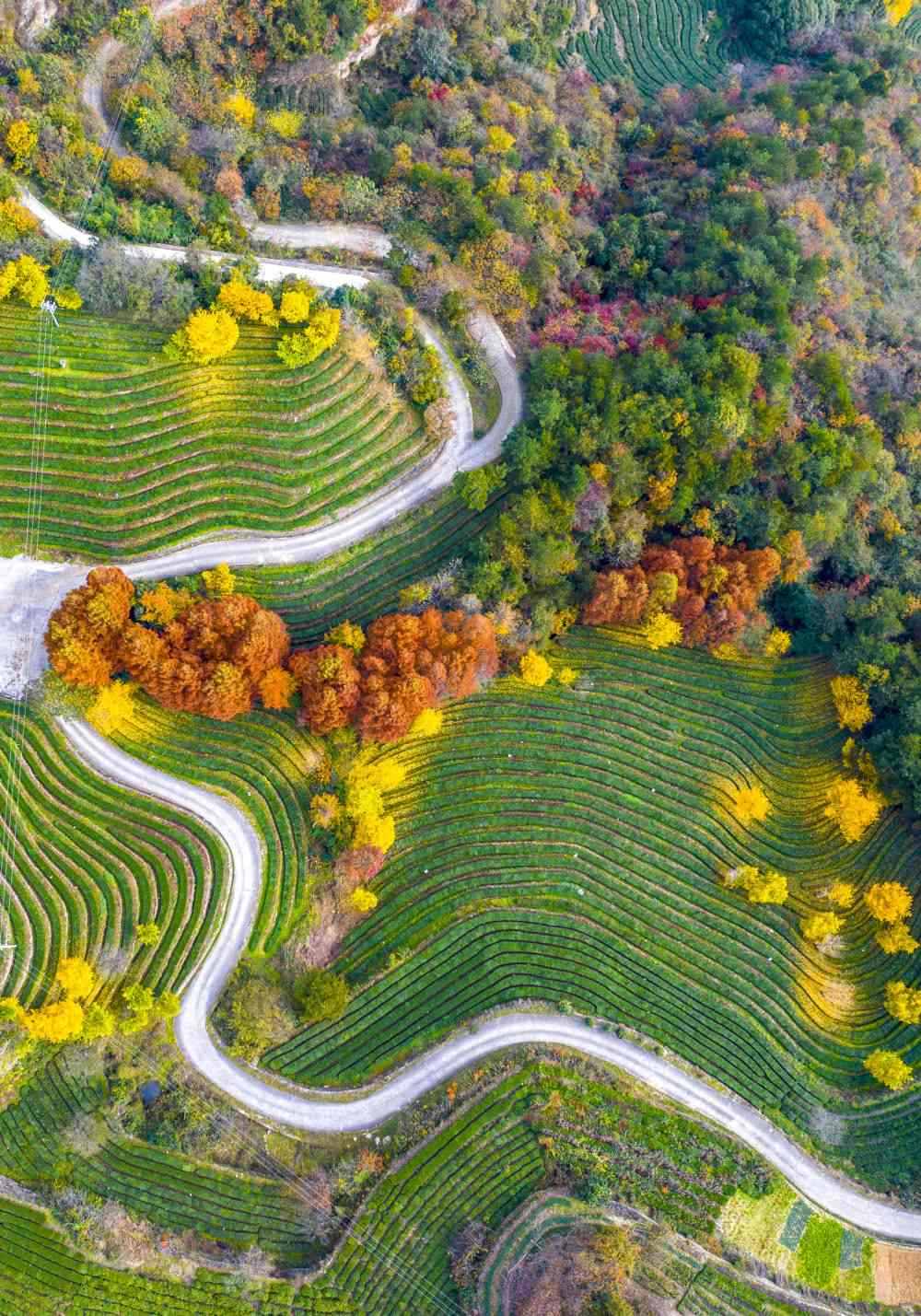 2023年11月24日在十堰市武當(dāng)山旅游經(jīng)濟特區(qū)八仙觀村拍攝的茶園(無人機照片)。
