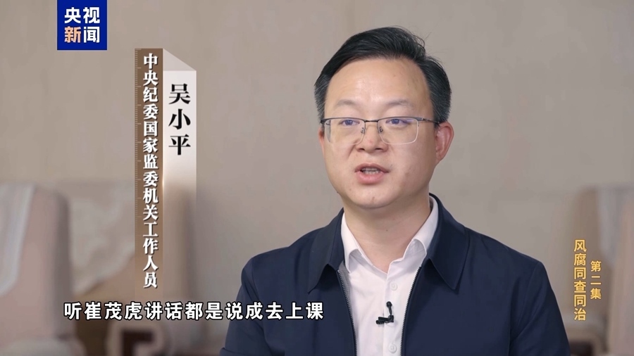 中央紀委國家監(jiān)委機關(guān)工作人員 吳小平:由風(fēng)及腐,風(fēng)腐一體,它是一個規(guī)律,崔茂虎案件就是這樣一個典型。不法商人先是通過和崔茂虎在一起陪吃陪喝陪玩,來拉扯關(guān)系建立感情,最后才發(fā)展成為權(quán)錢交易,利益共同體。